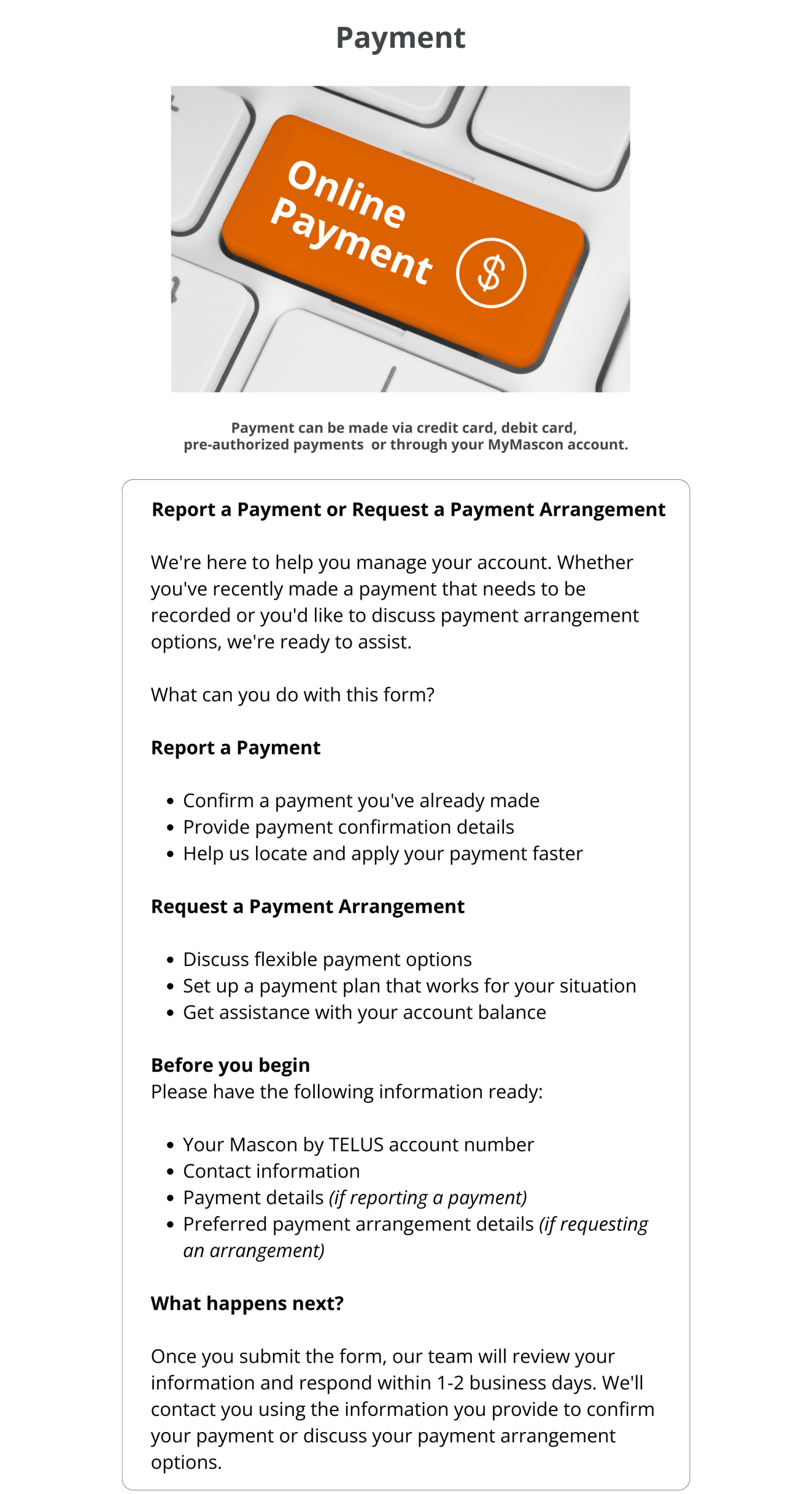 Payment Form Need immediate assistance? Contact our customer support team at 1-866-832-6020. Available Monday to Friday 8 AM – 5 PM PST