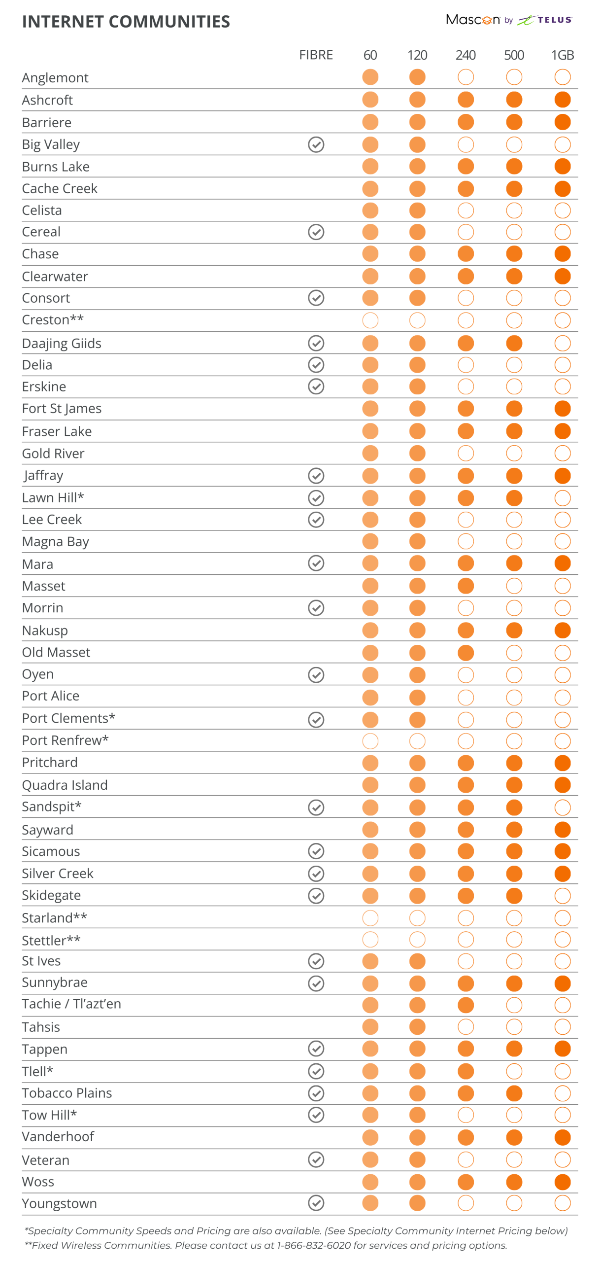 - Internet access speed depends on location, usage within the home network, Internet traffic, applicable network management and server configurations. For a description of Mascon’s network management practices, please see mascon.ca/networkmanagement.